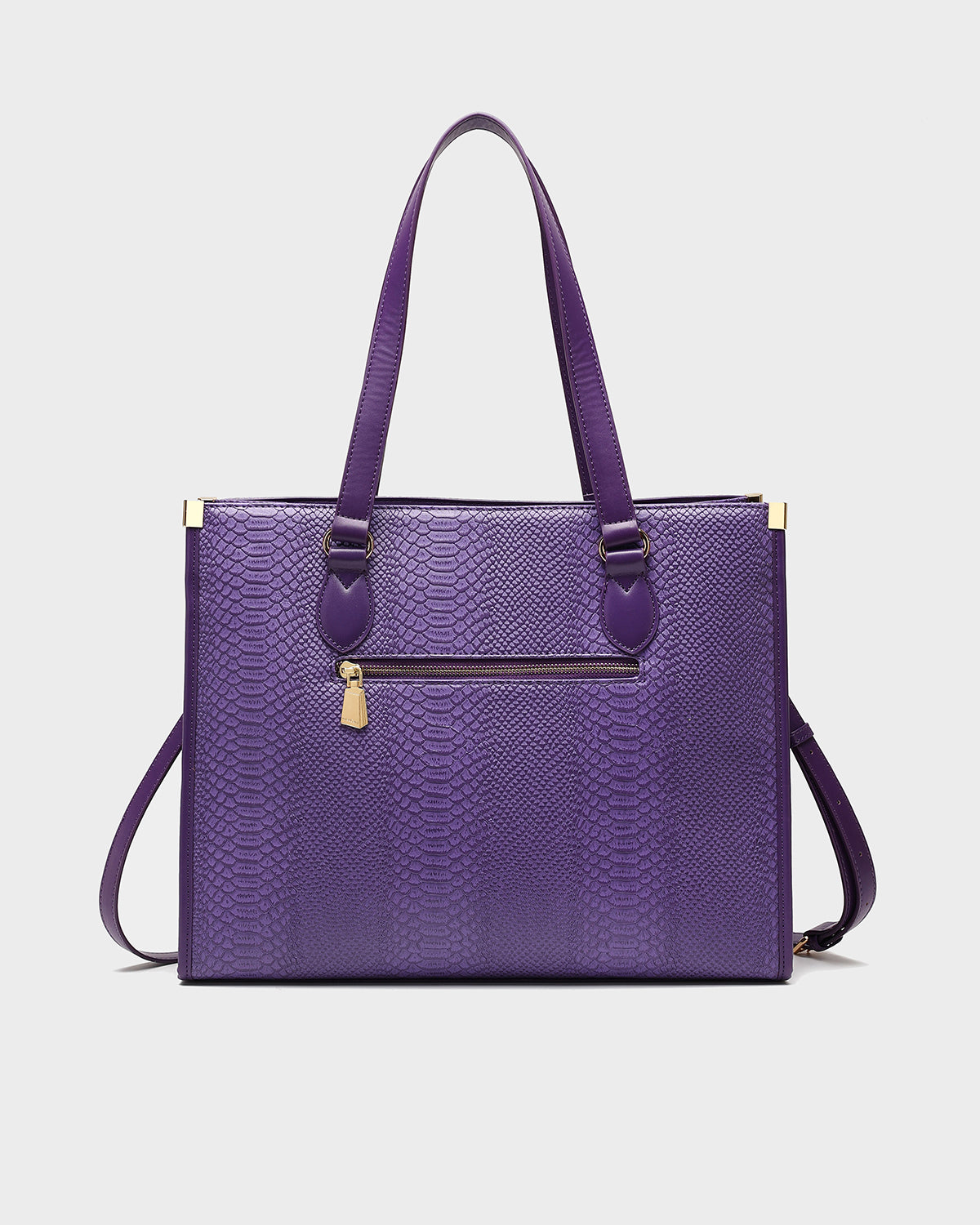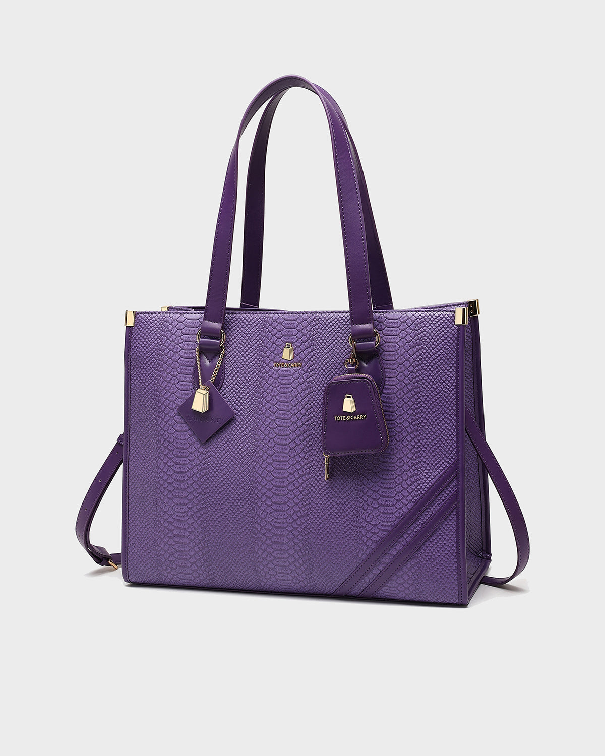 The Signature City Tote Bag in Purple is a stylish and functional accessory that will elevate your everyday look. Crafted from premium faux leather with a faux snakeskin texture, this bag offers a luxurious and sophisticated feel. The spacious interior provides ample storage for your essentials, while the double top handles and a shoulder strap offer versatile carrying options.